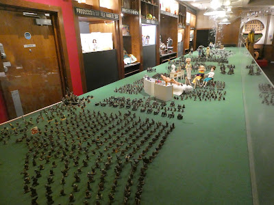 And now for something completely different, as the saying goes: as well as Ghent, I have recently been to - Croydon. I went to see an exhibition, organised by the Artangel group, named Come as You Really Are, which showed off the weird, wonderful and varied world of people's hobbies. As you may be aware, blogger Mark Man of Tin has contributed a selection of his classic Toy Soldiers to the exhibition - he has put up several posts on his blog showing them. Here are some of Mark's figures (I don't think the Spitfire model is his, however ? )